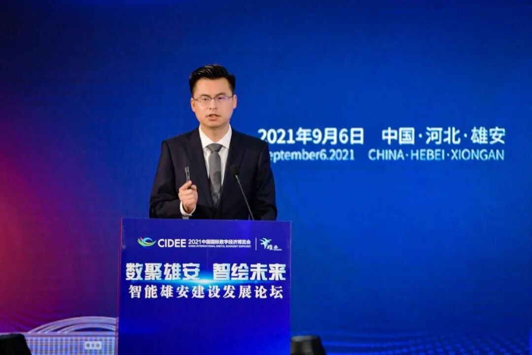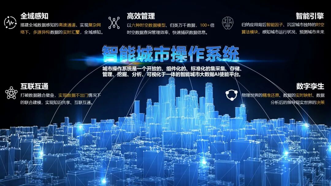 郑宇在智能雄安建设发展论坛现场重点介绍了智能城市操作系统的五大特色——全域感知、高效管理、智能引擎、互联互通和数字孪生。
