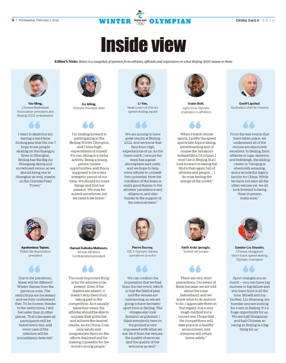 官方英文会刊将权威、准确、及时、全面地记录北京冬奥会全过程,呈现“简约、安全、精彩”的冬奥赛事,宣传“绿色、共享、开放、廉洁”的办奥理念,为弘扬奥林匹克精神,促进奥林匹克运动发展,推动构建人类命运共同体作出新的贡献。