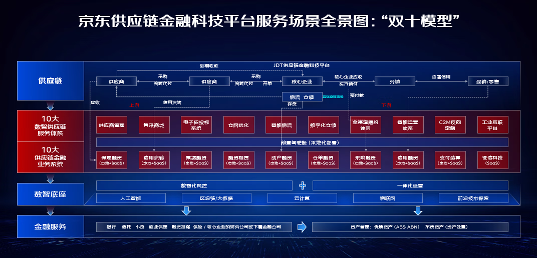 以科技能力为基础,以供应链为核心,助力政府园区服务平台和核心企业解决其上下游融资难题,是京东供应链金融科技平台的核心价值所在。