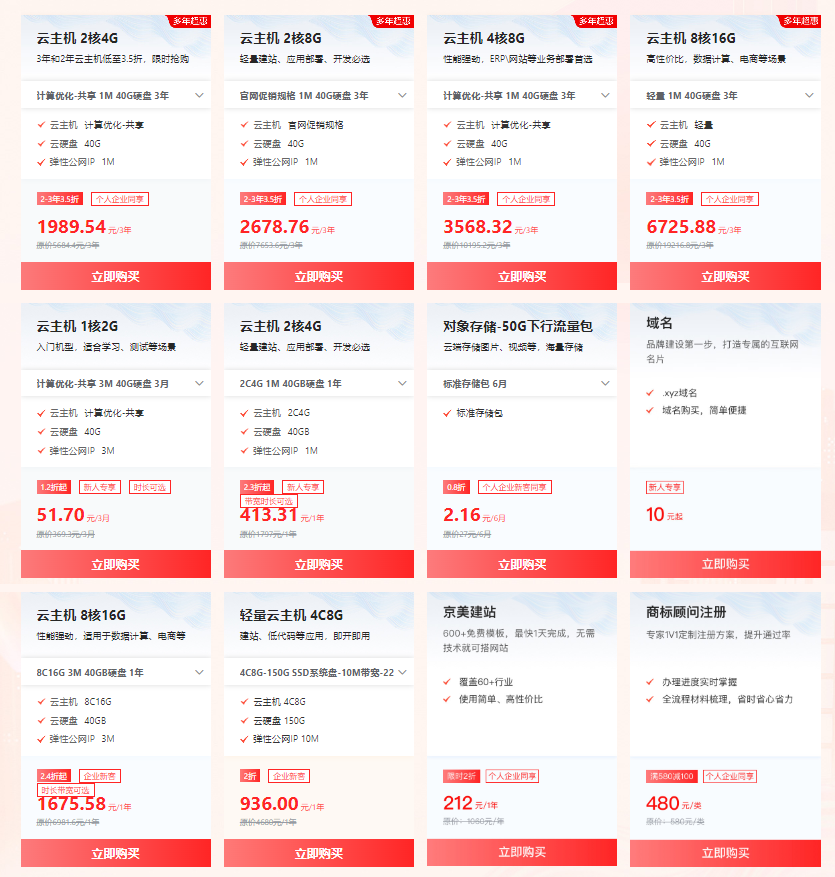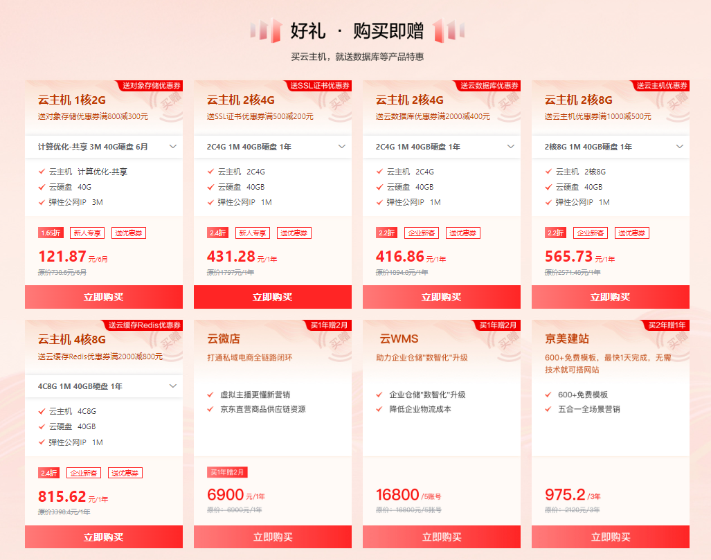 11.11活动期间京东云云官网免企业认证环节,个人和企业均享首购特惠。多款高性价比机型低至3年3.5折,企业和个人可用1年的价格购云主机的3年使用期。