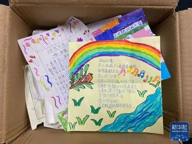 图为李柏霖保存的孩子们的诗歌原稿 图源:新华社