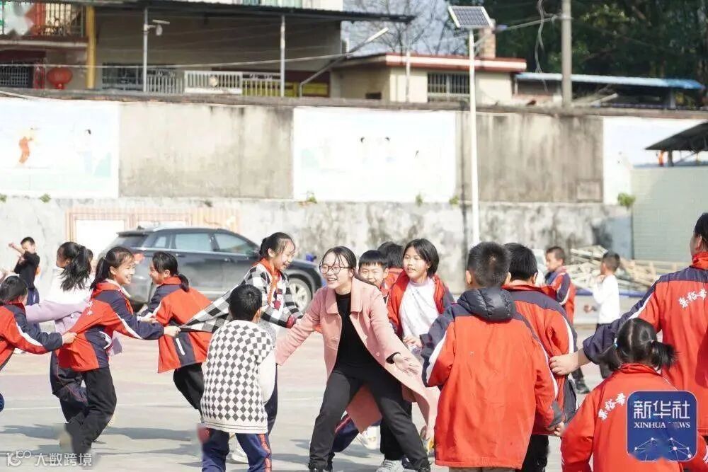图为李柏霖带领孩子们玩游戏 图源:新华社