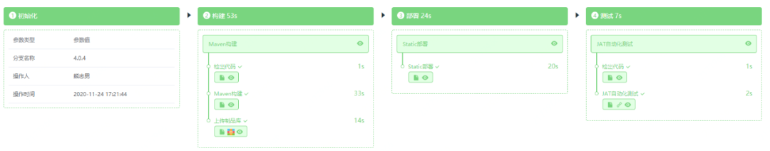 而想要实现一个持续集成流水线,也就是当代码变更时,能触发拉取代码、编译构建、环境部署和自动化测试执行一连串的操作。就需要在JCI系统里配置一个自定义流水线来实现。