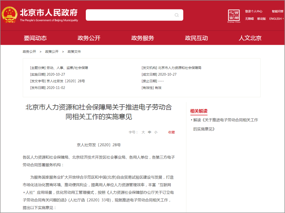 但最近,她看到了脱离繁琐工作的曙光。北京市人力资源和社会保障局公开发布《关于推进电子劳动合同相关工作的实施意见》(下称意见),明确指出:“用人单位与劳动者协商一致,可以采用电子形式订立书面劳动合同”、“用人单位可使用第三方签署服务机构提供的签署系统,或采用自建自用签署系统模式。”