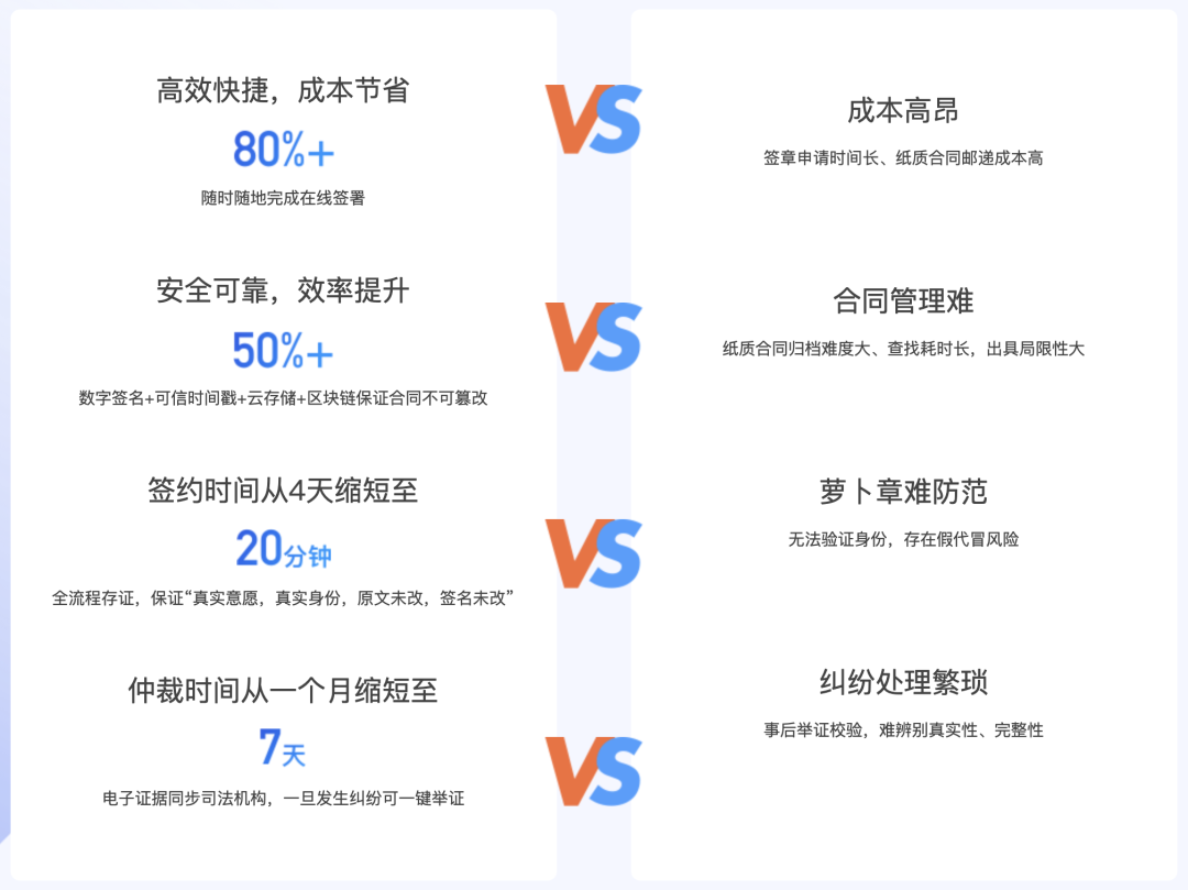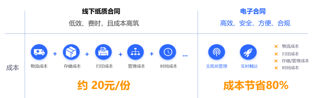 其实,近年来已有不少企业享受到了电子合同带来的便利。以京东为例,试行电子劳动合同后,相比签订纸质劳动合同可以节省材料采购、打印耗材、装订、邮寄、日常档案管理等经济成本和时间成本。仅北京地区一年就可降低成本80%,减少5个流程环节,效率提升80%。