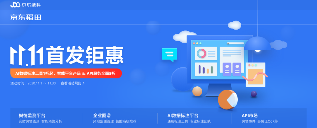 为此京东数科旗下产品舆情监测平台和企业图谱推出11.11钜惠活动,帮助企业以5折的优惠价格,省时省力应对11.11,规避舆情风险,发现潜在商机。