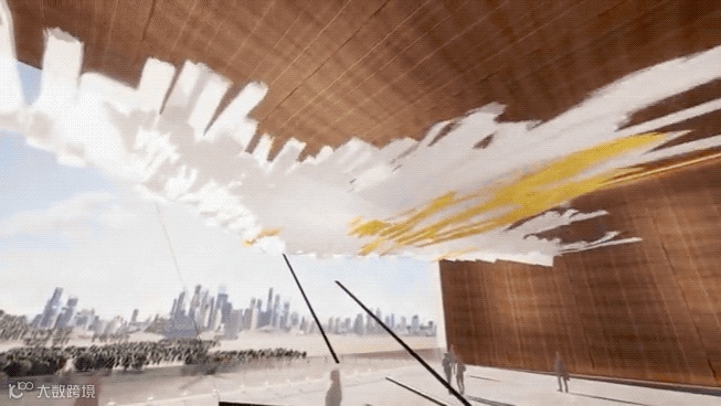 「鲲鹏」取自于《庄子·逍遥游》:「北冥有鱼,其名曰鲲。鲲之大,不知其几千里也;化而为鸟,其名为鹏。鹏之背,不知其几千里也。怒而飞,其翼若垂天之云。」鲲鹏是象征中华民族志向高洁信仰的上古神兽。鲲鹏自遥远的北海而来,张开的翅膀就像天边的云彩。当海风起时,鲲鹏就会随着海上汹涌的波涛向南飞翔。艺术家运用tensegrity structure张拉整体结构,让装置艺术不需悬吊,自体悬浮在空中,配合风吹飘动白金色布料。人们在下方仰望时,能感受到鲲鹏装置艺术与风结合的视觉、听觉、触觉的震撼,体会「鲲鹏之志」视野的高远。鲲鹏装置艺术座落于深业上城,朝向莲花山,迎风展翅,气势磅礴,犹如腾飞的深圳举世瞩目。