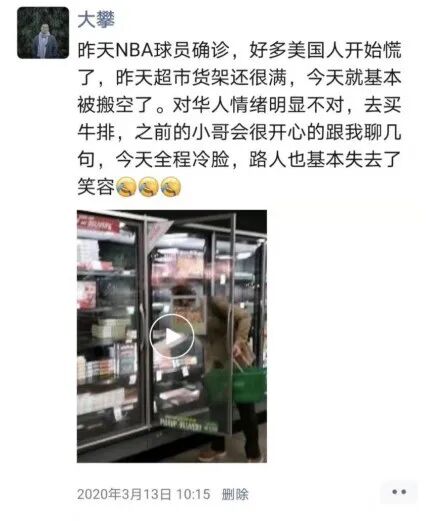 美国很多名人,包括NBA球星确诊,引发美国社会恐慌大家纷纷抢购物资,针对亚裔的犯罪也开始上升。