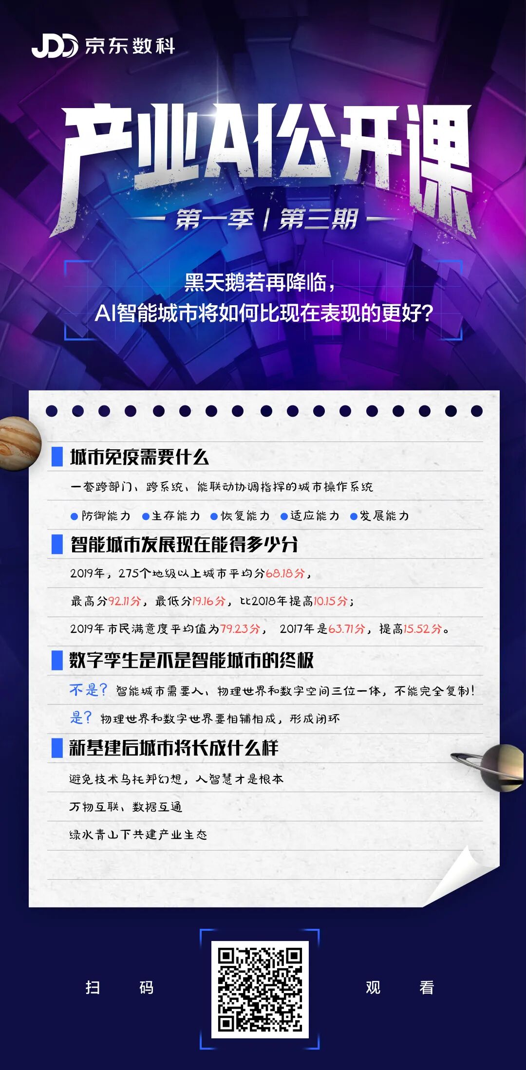 “产业AI公开课”是由中国科协科学技术传播中心担任指导单位、京东数科产业AI中心主办的体系化“季播”栏目,每一季设有核心主题,邀请行业资深大牛解读当下热点。每季五至六期,一周一期,通过京东数科微信、京东数科百家号、京东数科头条号公开直播。本季(第一季)主题为“AI将如何改变下一个十年”。