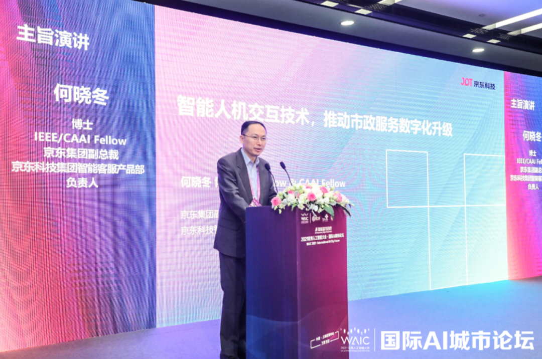 众智成城”为主题的2021世界人工智能大会(WAIC)在上海世博中心正式召开。本届世界人工智能大会围绕人工智能技术发展、产业落地等热门话题进行深入探讨。京东集团副总裁、京东科技智能客服产品部负责人、IEEE/CAAI Fellow