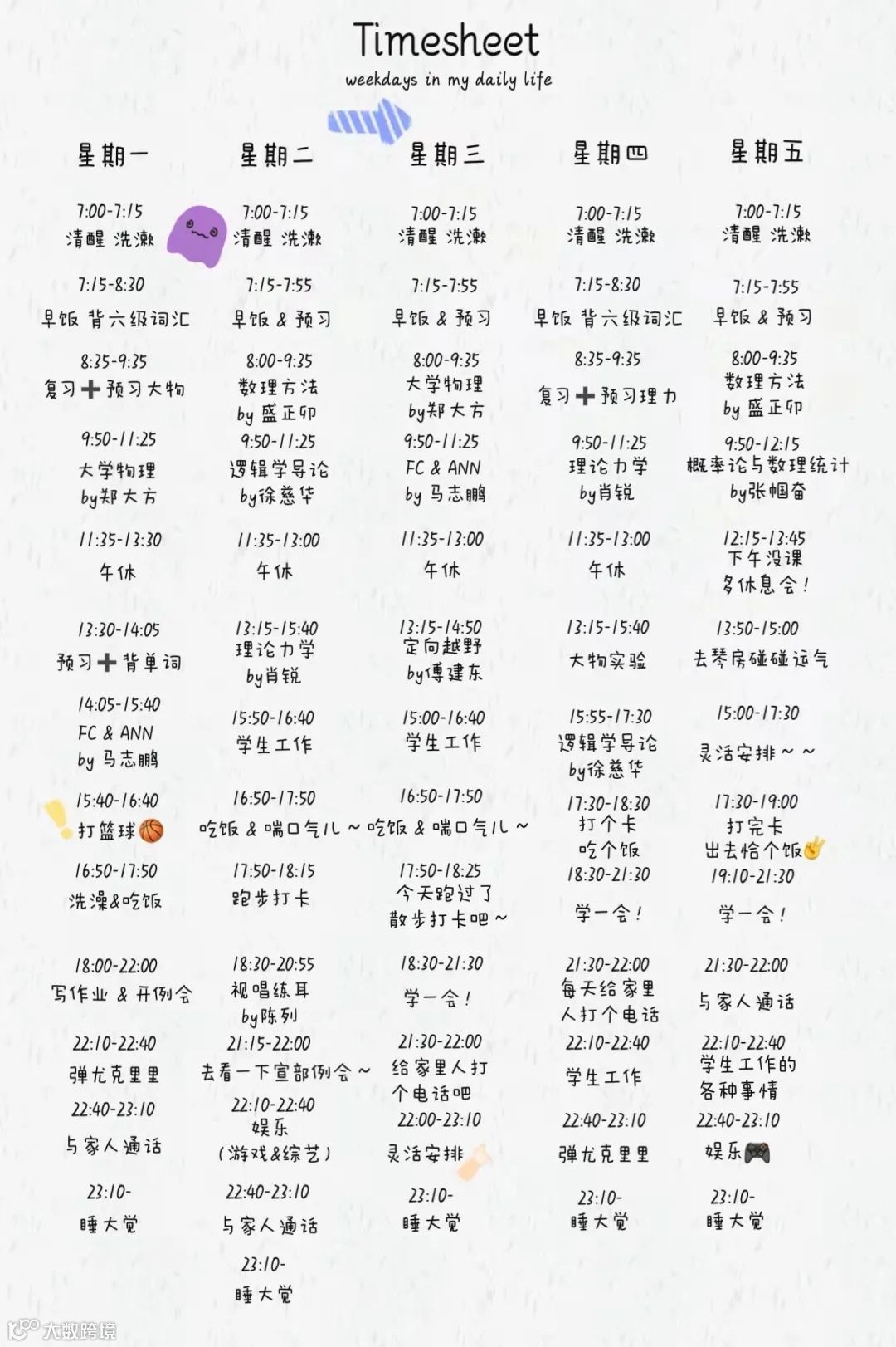 据了解,浙大作息表大赛已经是第二届了。一起看看同学们的作息表吧!