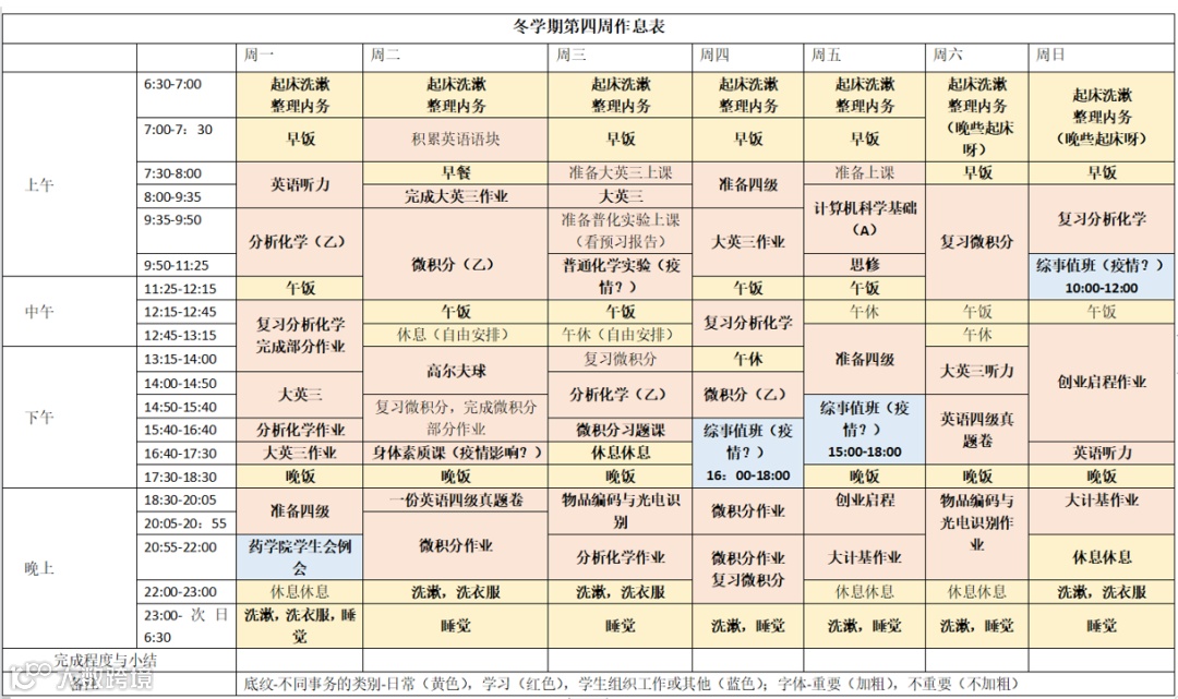 不同的颜色代表不同的任务,既美观了时间表,又清晰了日程,色块拼接,给视觉美的享受。