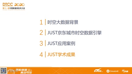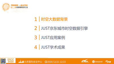 JUST简介:时空数据蕴含着丰富的信息,能够应用于各种城市应用。但时空数据更新频率高、数据体量大、结构复杂,难以被高效存储、管理和分析。单台机器显然无法应对海量数据的场景,而分布式查询处理框架例如Spark、Hadoop等,由于缺乏有效的时空索引和时空分析算法,因此难以高效地处理时空数据。京东城市时空数据引擎JUST采用先进的数据建模方法、数据存储技术、分布式索引技术和分析技术,预置了多种有效的时空挖掘算法,能够帮助人们便捷高效地管理海量时空数据。基于JUST连续两次获得了ACM SIGSPATIAL十年影响力大奖,发表了国际顶级论文20余篇,申请了专利30余项。JUST已为多个智能城市项目提供支持,在新冠防疫中也发挥了重要作用;在京东内部,JUST在双十一亿万级订单和海量物流轨迹场景下得到了验证。