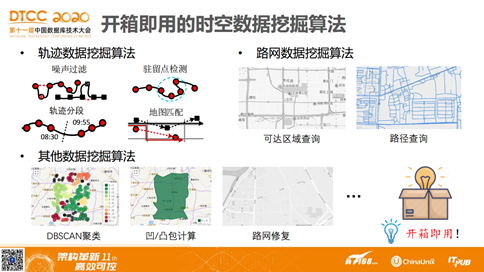 前面主要介绍我们JUST为扩展性强、效率高作的努力。为了让JUST更加易用,我们封装了很多开箱即用的时空数据挖掘算法。包括:轨迹数据挖掘算法,路网数据挖掘算法,以及其他数据挖掘算法。