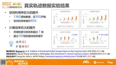 总而言之,我们为轨迹设计的新的存储模式,空间占用更少,能够更好地支持各种时空查询,而且效率更高。