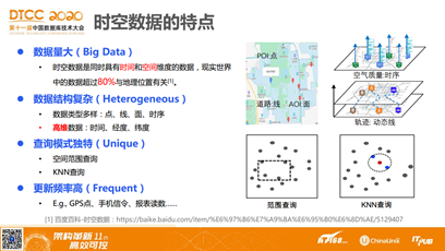 首先,时空数据的体量非常大。大家都说,现在是大数据时代,而现实世界中,80%的数据都与地理位置相关。这就要求咱们的时空数据引擎具有很强的扩展性。