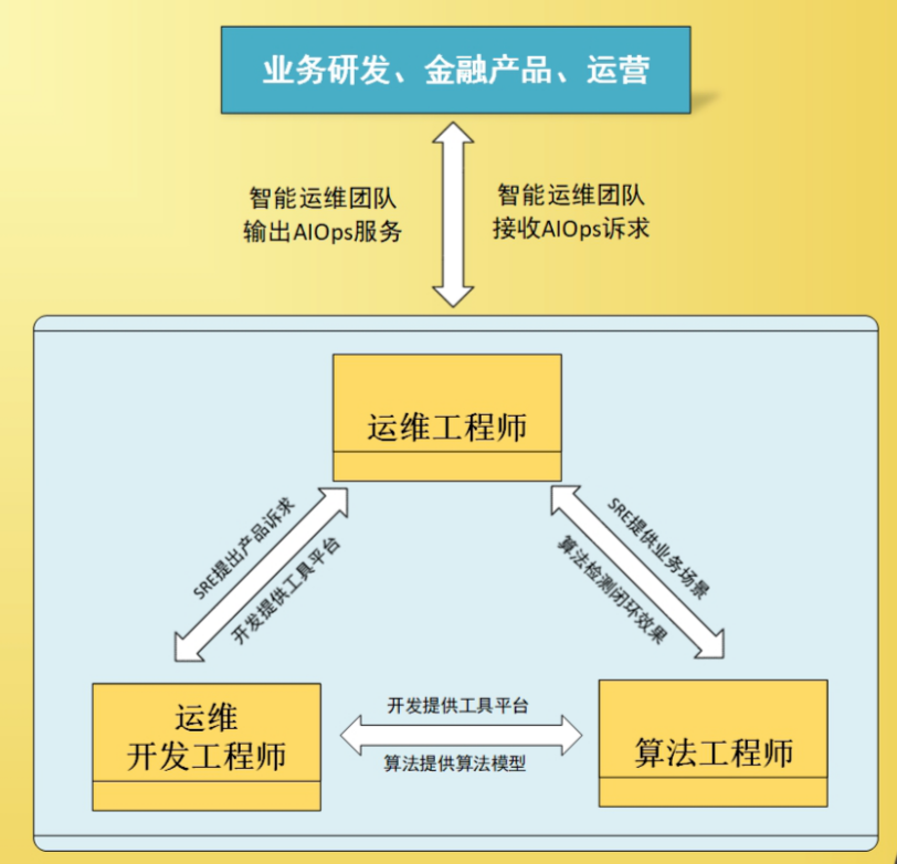 面对AIOps的赛道,京东数科智能运维团队合理配置团队角色,运维工程师、开发工程师和算法工程师扮演着不同的角色,三者缺一不可。以下是数科智能运维团队基于内部人员职能分配的一些尝试和经验。