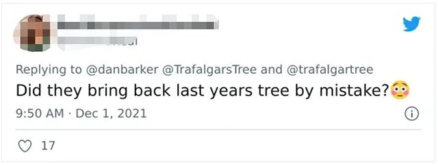 眼见着网友们讨论得如此热烈,特拉法加圣诞树的官方推特也终于出来回应了↓