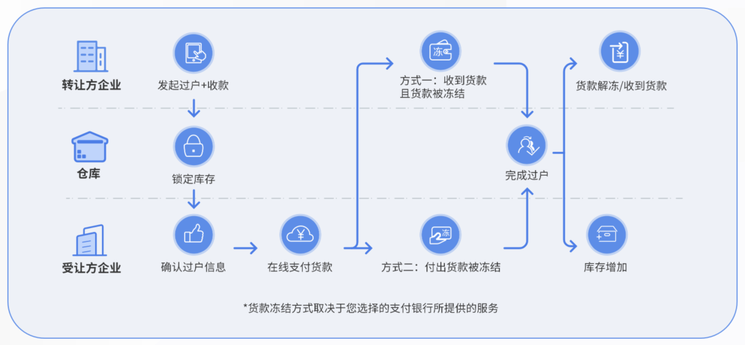 第四道防线,“货兑宝”平台和仓库仓储系统(WMS)数据打通,做到仓储数据和平台数据实时交互传递。客户可以通过线上实时查询入库货物信息,交易、过户、仓单对应货物,“货兑宝”平台自动锁货,完成相应业务逻辑,才能解锁。