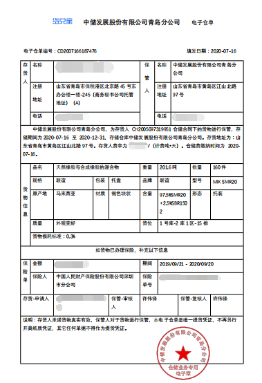 下午5点,在经历进口货物的把关、交税、清关后,这批橡胶成功入库青岛中储,同时拥有了一张属于自己的电子仓单。可不要小看了这一张电子仓单,在区块链技术加持下,它独一无二、不可篡改,持有者则可凭借此单前往青岛中储提取货物,诺顿也立即把这张电子仓单发给了建行。