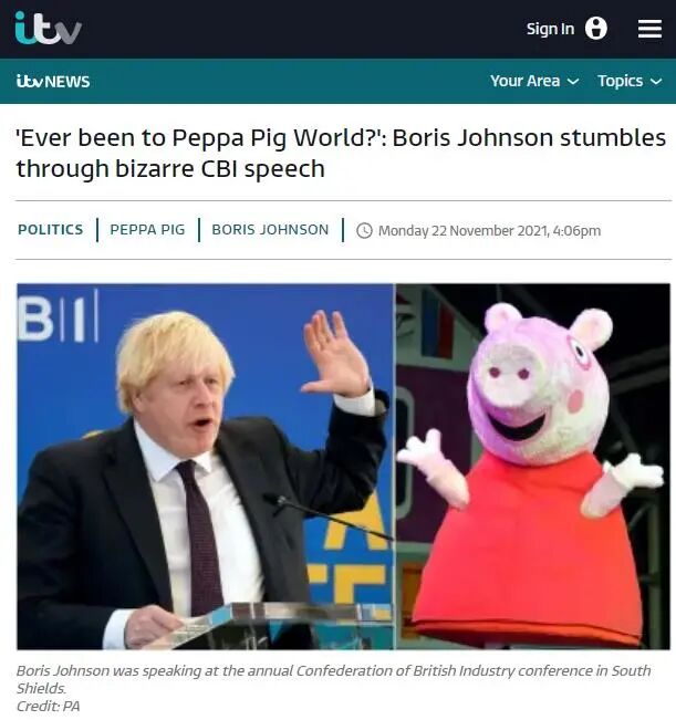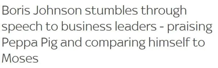 天空新闻:约翰逊对商界领袖的杂乱演讲——夸奖小猪佩奇自比摩西