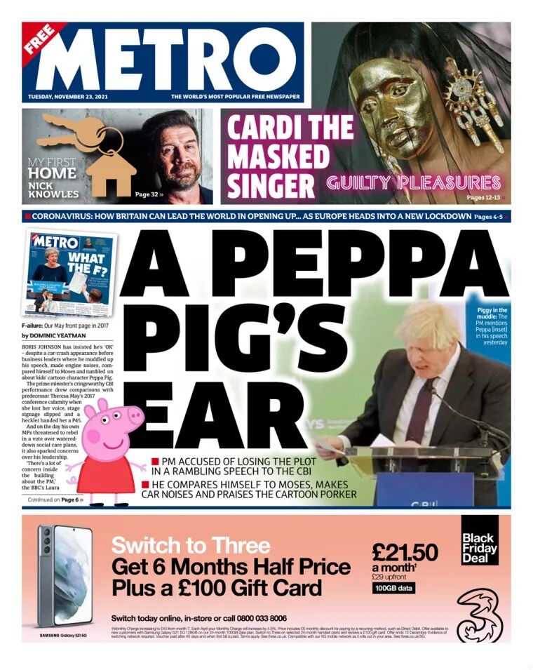 Mr Johnson made a "Peppa Pig's ear" of the speech at the Port of Tyne, according to the Metro.
