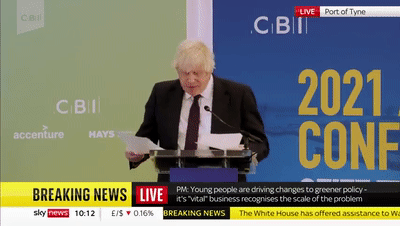 路透社报道称,在当天的英国工业联盟(Confederation of British Industry)演讲中,约翰逊突然找不到演讲稿了。翻来翻去之后,约翰逊仍然一无所获,只得叹息“该死”。随后,他还不停的嘀咕道“抱歉抱歉”。