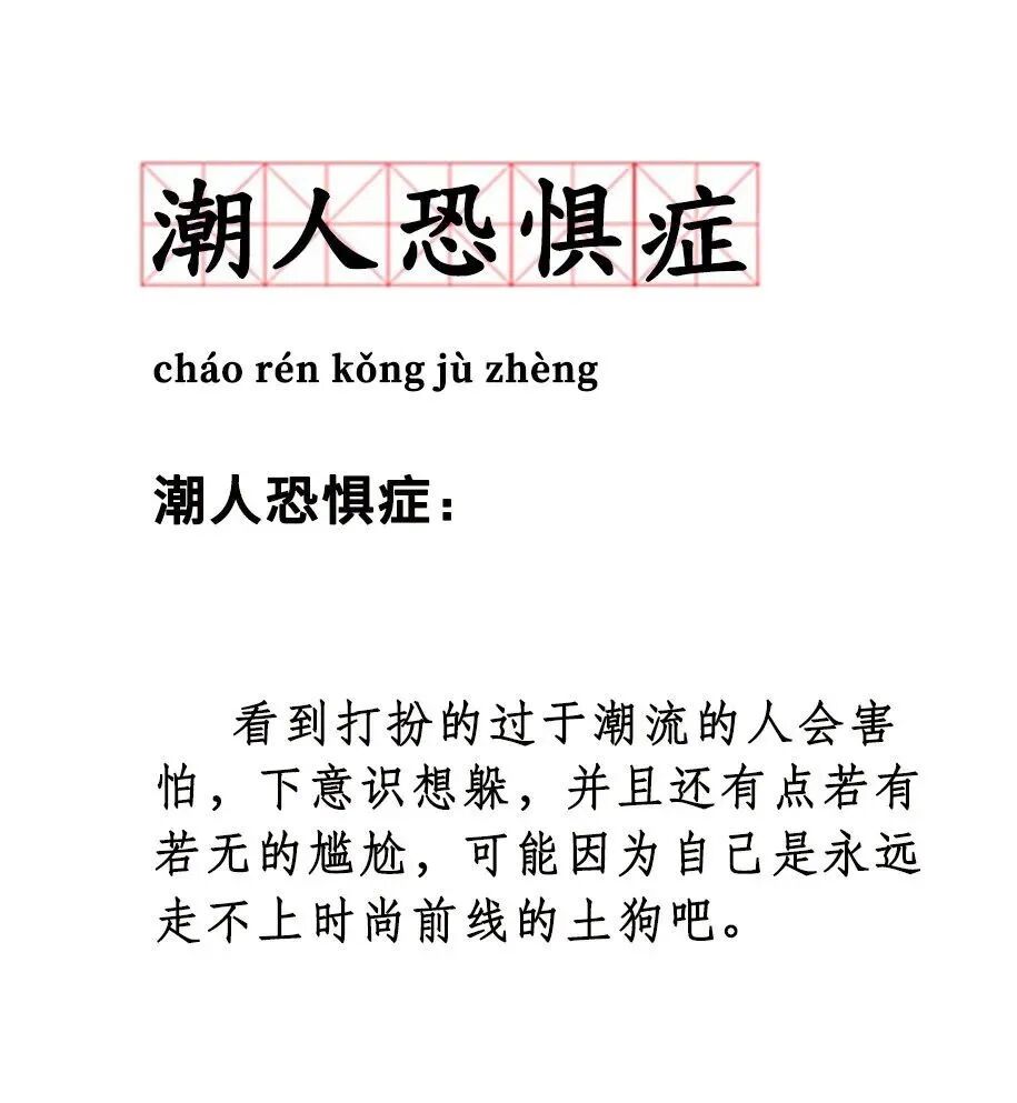 有人还解释说,“潮恐”和“社恐”不是一回事。“潮恐”是指害怕自己不够潮而无法融入的情况。