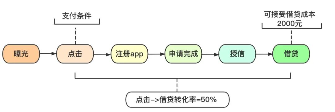 那么,如何确定每个客群我们所能付出的最大成本呢?首先,我们一起来看一下互金场景下流量的转化链路: