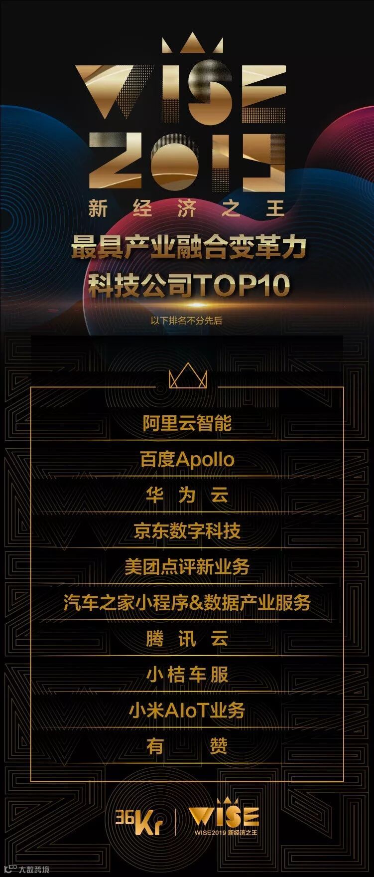 11月26日,京东数字科技集团入选36氪 Wise2019【最具产业融合变革力科技公司Top10】。这份榜单包含了百度Apollo、华为云等产业融合方面最具有变革魄力的10家科技公司,也展现了京东数科的科技力。感谢行业的认可与支持!