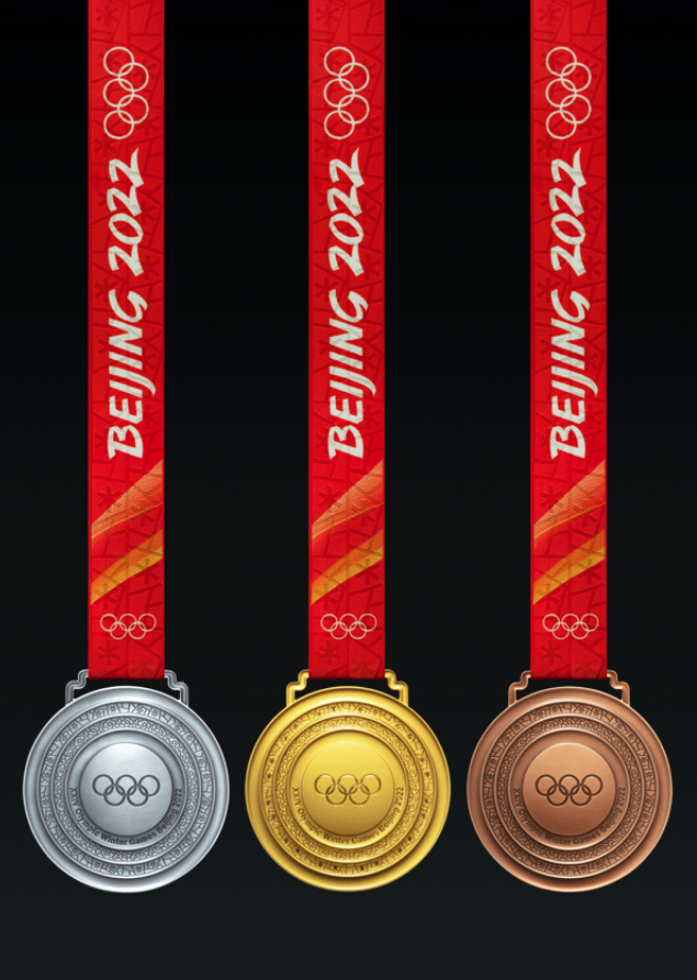 The medals, inspired by yu bi, a circular Chinese jade artifact dating back 5,000 years, each has carvings of the Olympic rings on one side and inscribed with the words "XXIV Olympic Winter Games Beijing 2022".