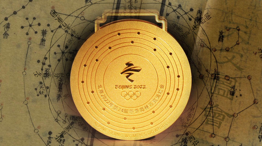 The other side of the medals has the Beijing 2022 emblem at the center. The outer rings are dotted with 24 stars strung together by circles, representing the 24th edition of the Winter Olympics.