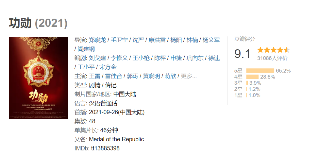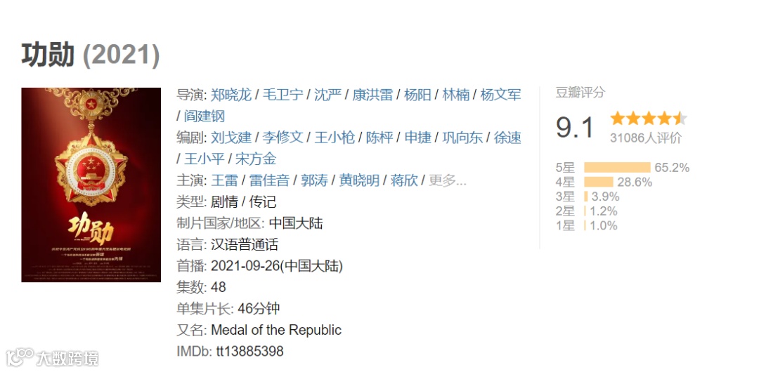 自播出以来,电视剧《功勋》的相关话题在微博的阅读量超过一亿↓