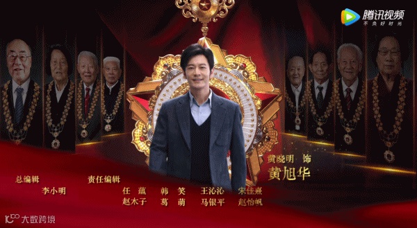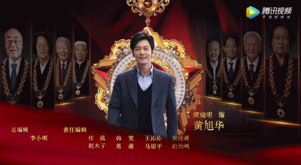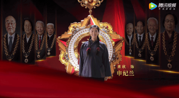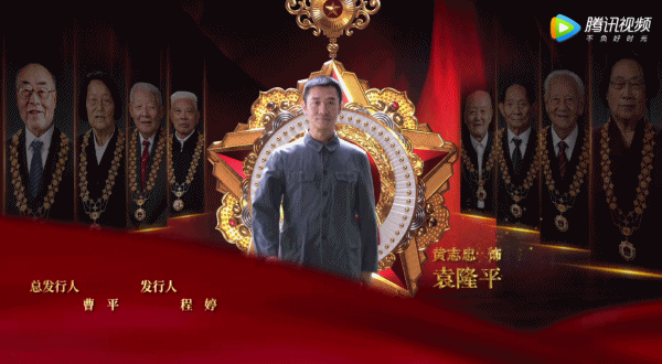 片头里,首先是一枚“共和国勋章”的近景特写,随后8位扮演功勋人物的演员一一向观众徐徐走来,几秒钟的镜头里,扮演者的形象逐渐过渡到真实的功勋人物,眼前的他们从风华正茂到垂垂老矣,将一生献给祖国。
