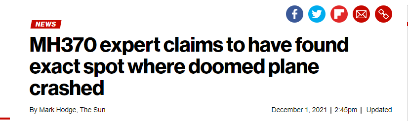 据悉,戈弗雷所发现的MH370失踪的地点并不在2015年澳大利亚交通安全局划定的原始搜索区域内,但位于2016年扩大的12万平方公里搜索区域的北部。