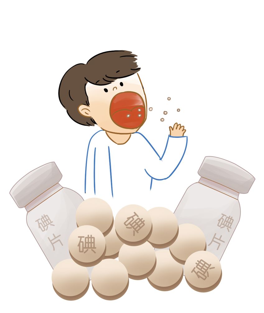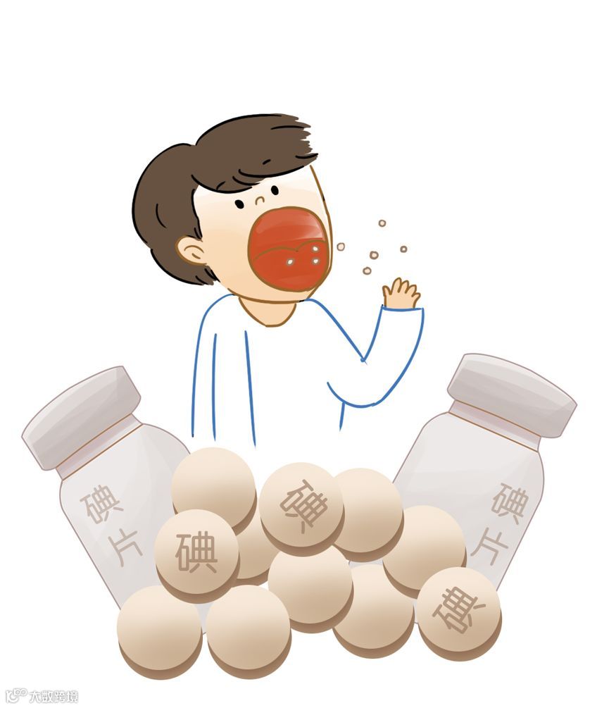 食用碘片,《切尔诺贝利》剧中科学家让大家服用的是碘127,是没有放射性的。因为甲状腺在吸收足够多的正常的碘后,碘储量达到饱和,就不会进一步吸收核事故后产生的放射性碘同位素碘131。