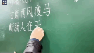 张老师说粉笔字相对纸上书写难度更大一点,“因为在黑板上写字,字形稍大,粉笔笔锋难以调整,对汉字的笔画、结构、章法布局更难把握,需要花费更多的时间精力练习。”