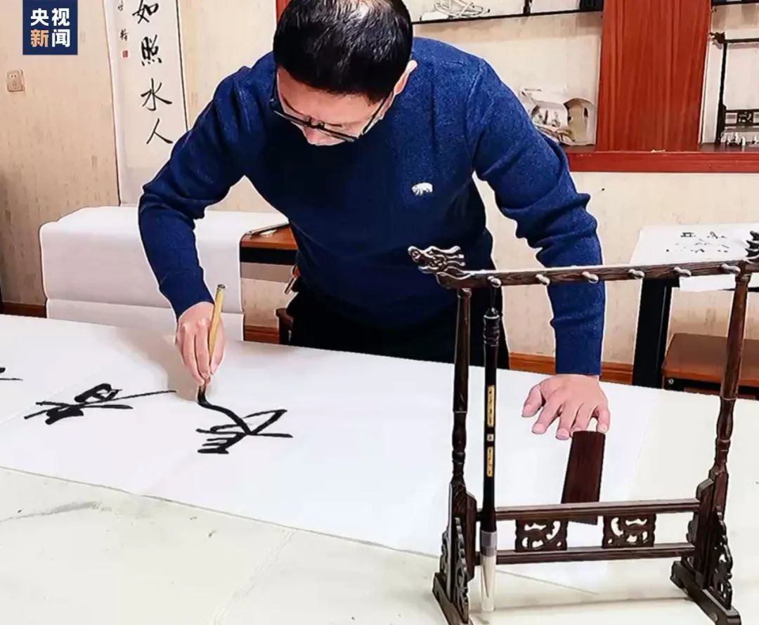 Graduated from university as an arts and crafts major in 2003, Zhang Shifeng, now 40, is an art teacher. He took calligraphy as a hobby at a young age, and has been practicing calligraphy with chalk for decades.