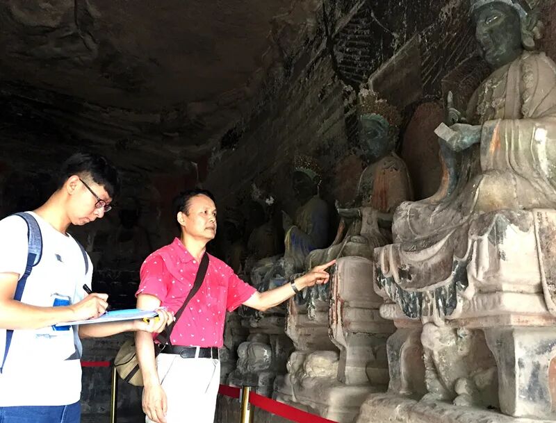 张秉坚教授团队调研四川石窟彩绘 图源:浙江大学