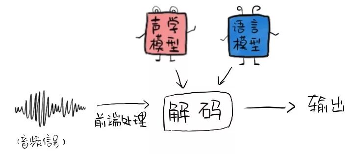 在获得音频信号后,经过一系列繁琐(但此处省略)的前端处理,把人的语音转化成机器的语音进行解码,最终就能输出为语音识别的文字啦。