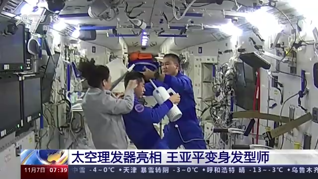 In the video, Ye Guangfu held a mirror as Wang Yaping gave him a haircut with scissors and a modified electric razor, while Zhai Zhigang collected the cut hair. Though a mundane activity when compared with a spacewalk, it demonstrated the spirit of cooperation among the three taikonauts.