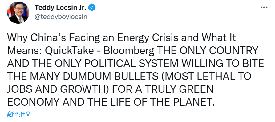 尽管彭博社的文章不断质疑中国出现电力危机,但在结尾处给出了一个论断:中国不太可能放弃气候目标。(Will China abandon its climate goals? Not likely. )