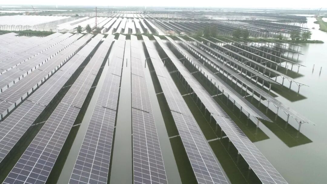 江苏省连云港市灌云县洋桥200兆瓦渔光一体光伏发电全额平价上网示范项目施工现场。图片来源:东方IC
