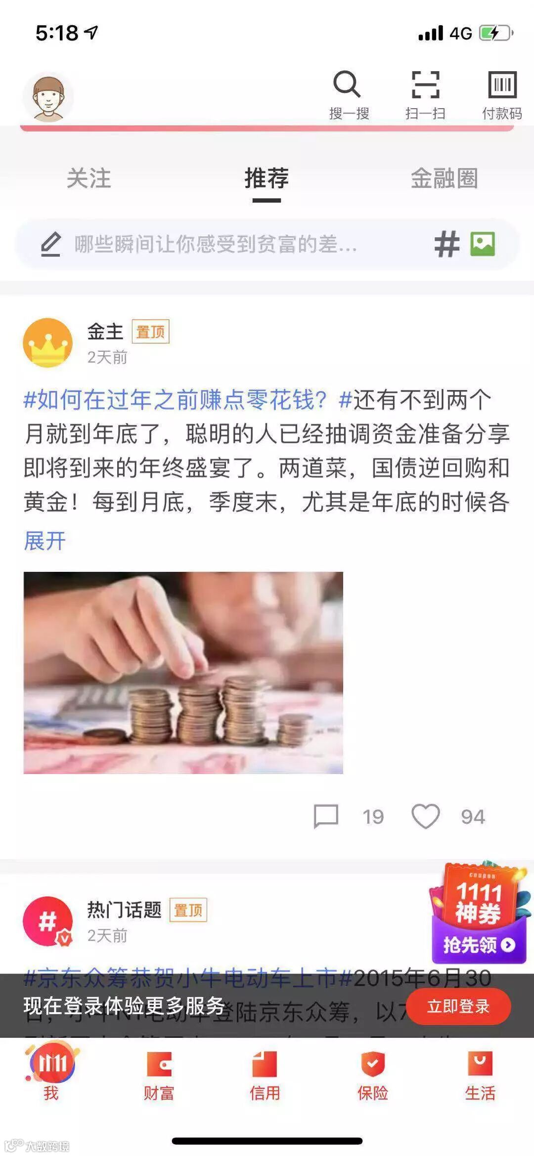 在她接住手机的一瞬间抓住她的手,同时带着诡异的坏笑说:你以为我这么做是为了吸引注意力吗?你错了,我是要你看手机!你知道么, 最新版的京东金融 APP 的 IOS版有社区板块了,刚才这部手机录入了你的指纹,你已经和它结下不解之缘,里面有好多好玩有用的内容,还不赶紧看看去?(以下就是社区的页面了,为了避免你找不到,我特意放图出来 )