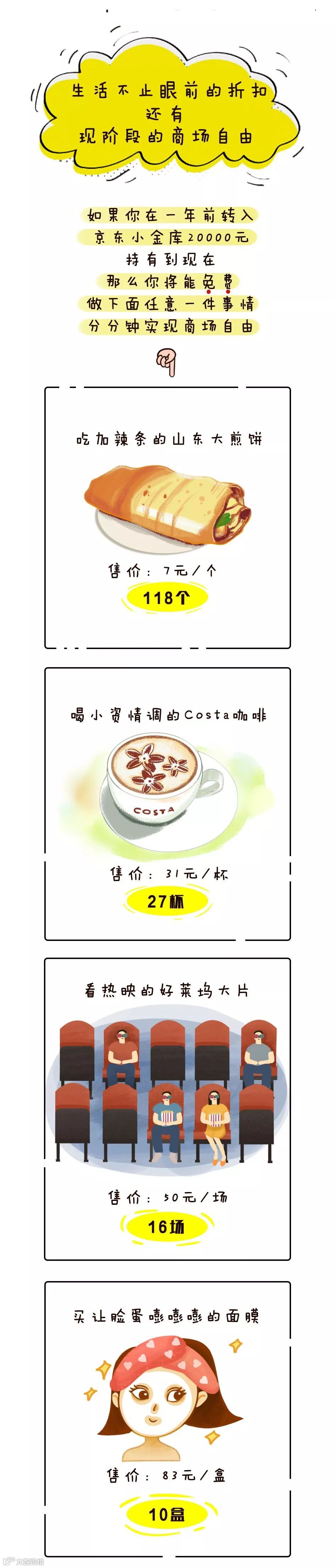 “融妹很想请你一起逛商场,一起喝速溶的、拿铁的、美式的、摩卡的咖啡;一起敷补水的、美白的、保湿的、祛痘的、抗衰老的、平衡油脂的蚕丝、全棉、涤纶、混纺、生物纤维面膜;一起看来自内地、美国、欧洲、韩国、日本、泰国、印度的喜剧、动作、爱情、惊悚、冒险的电影;一起听摇滚的、校园的、伤感的、放松的、带歌词的、不带歌词的音乐;一起吃火锅、酸辣粉、毛血旺、小面、麻辣烫、串串香、兔头、烤鱼、烤肉、烤全羊、米其林大餐、豌豆黄、豆汁、焦圈、爆肚、驴打滚、艾窝窝、炒肝、炸灌肠、白水羊头、茶汤、萨其马、一品酥脆煎饼、干锅鸭头、咖喱肉串、三鲜小馄饨、蟹壳黄、汤包、小笼馒头、白斩三黄鸡、哈尔滨红肠、烤冷面、齐齐哈尔烧烤……融妹想和你一起做好多好多的事情。所以,赶快来存钱到京东小金库,给融妹一个请你的机会吧(融妹说申请原创需要写够300个字嗯哼)”