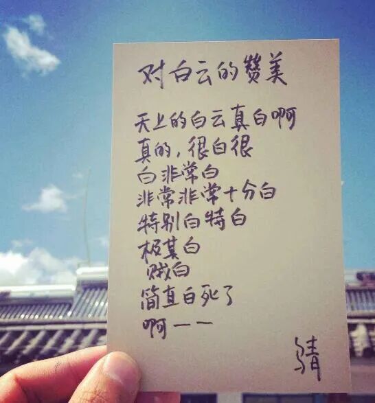 要说废话,网民的评论可能够废,但要论文学,最近可以数到2014年因为“废话现代诗”火过一把的乌青。他最出名的一首是争议颇大的《对白云的赞美》。