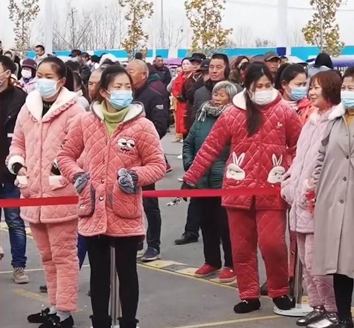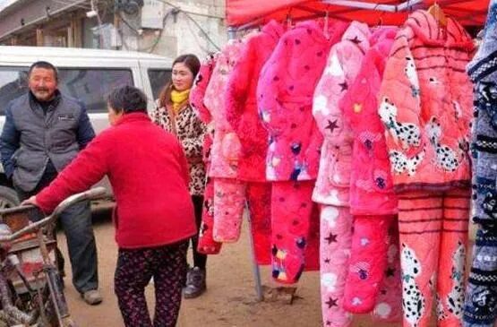 二是性价比高。比起动辄上千的羽绒衣,这种睡衣结实、耐脏、便宜,而且容易洗。虽然样式是乡土气息浓重了一点,但对于大多数乡镇居民来说,出去散个步、买个菜、接个娃,也不用穿得多么正式,这种居家服就流行起来。