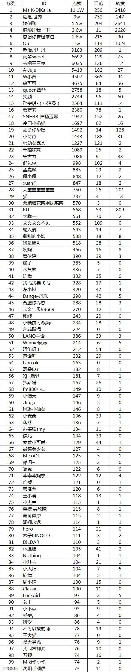 下面公示本次挑战赛的中奖名单(数据截止2018年6月30日)。