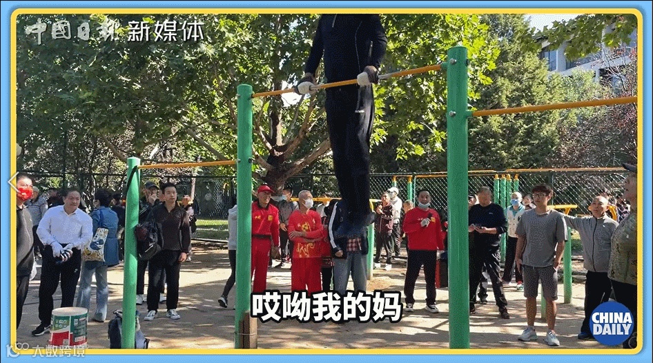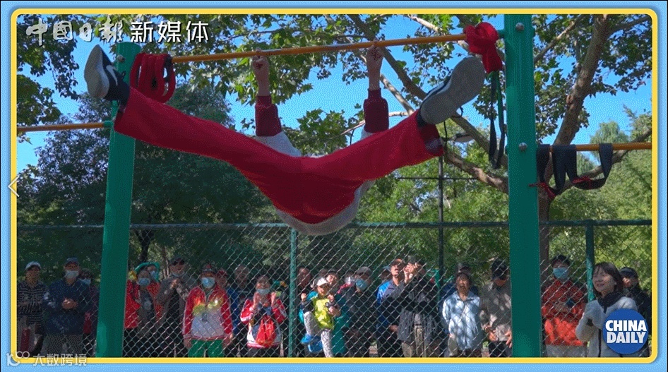 脚踩单杠上下翻转,手握单杠(horizontal bar)表演“太空漫步”,一字马倒立,弯腰叠罗汉……他们各个身怀绝技,看来没点功夫,真不敢进公园。