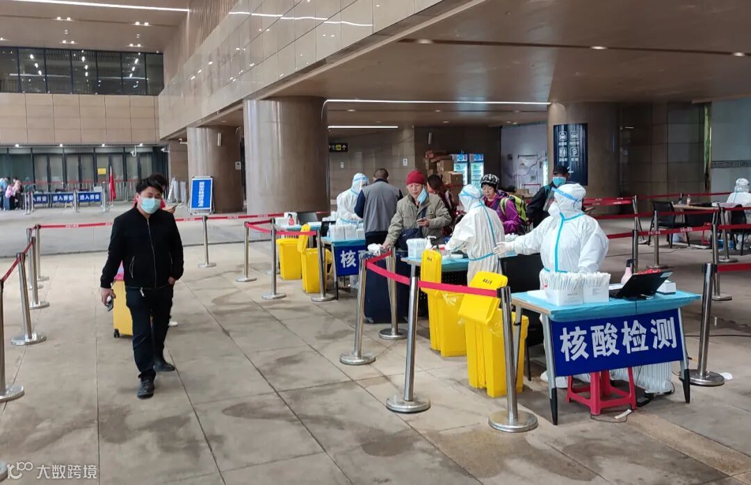2021年10月17日,陕西西安,外地来西安旅游的旅客或出差的商务人士按要求接受免费的核酸检测 图源:东方IC